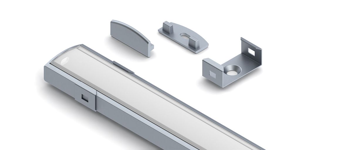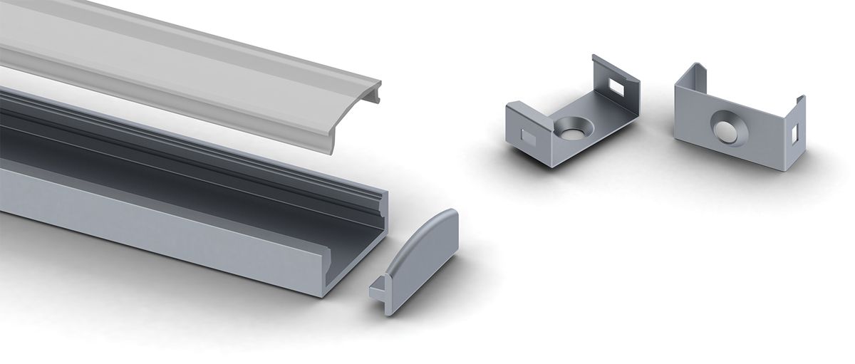 A miniature surface mounted linear LED luminaire manufactured from extruded anodised aluminium, with either clear cover or opal polycarbonate diffusers. Suitable for surface mounting via sprung metal fixing brackets.