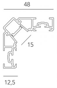 Aluminum profile 48 x 48 mm, for the lighting of the corners 90, perfectly integrated into the plasterboard, it completely outlines wall and ceiling angles.