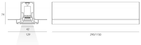 Luminaire made of aluminum for completely concealed mounting in the false ceiling. Black control optic.