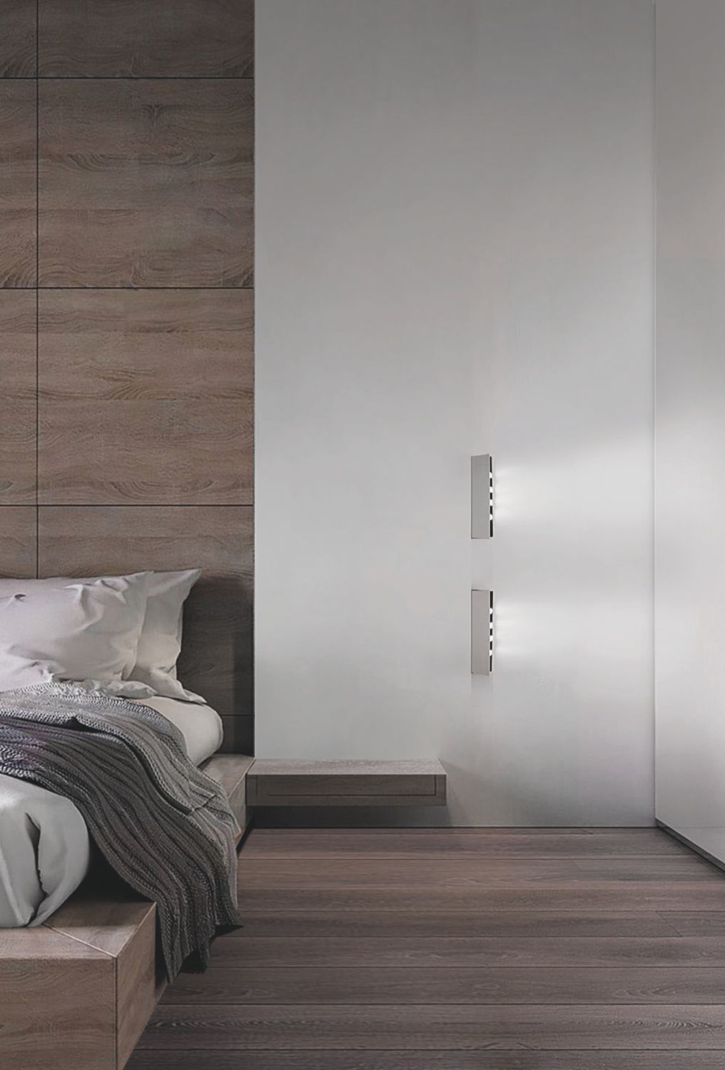 Light in motion. Unlike the traditional built-in version, the Flap design is inspired by simple geometric shapes, placing the light source within its own shape and space. The detail of the finish gives the architectural space a luxurious character.