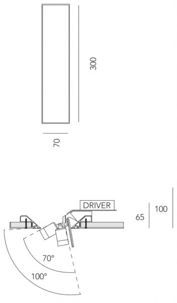 Recessed lighting fixture for interior lighting with tilting screen perfectly integrated into the architecture. Inside there are 4 LED spots, adjustable in two axis. Total hide recessed installation in the plasterboard. The exterior finishing of the metal door is silky white, the finishing of spots and inside is total black.