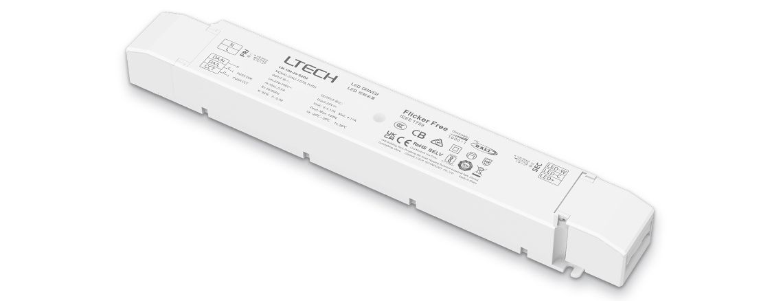 LTECH 24vdc constant voltage DALI-2 (DT8) dimmable driver with 2 independent output channels for tunable white colour temperature control and brightness dimming.