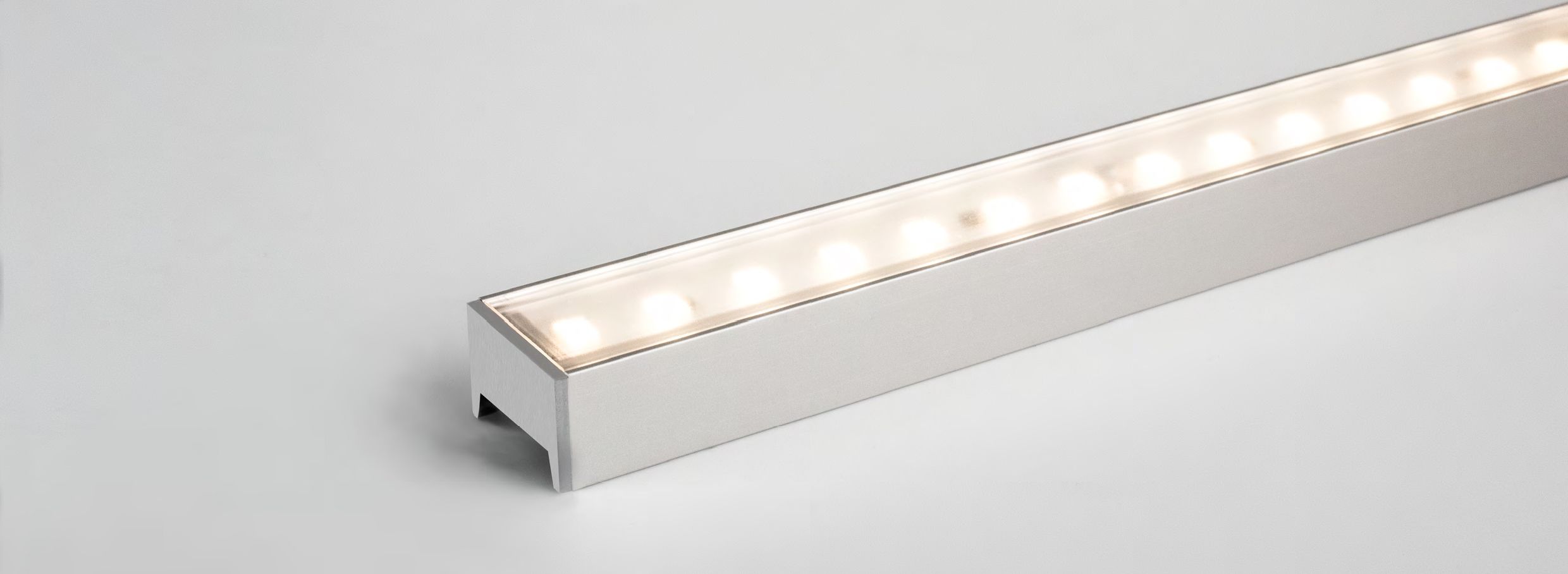 Manufactured from extruded anodised aluminium, with a silver finish, as standard. Custom powder-coated options (white/black/RAL) are also available. The low profile (11mm), combined with a transparent cover and industry-leading Nichia LEDs, produces a highly efficient (85% LOR) luminaire. Perfect for cove (indirect) lighting applications.