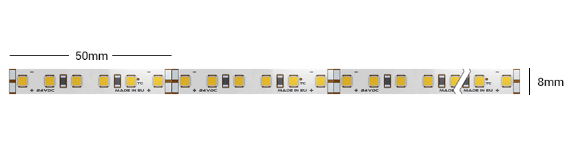 | D120E/14-930 | 120 | 14.4 W/m | 24 VDC | CRI90 | 3000K | 5 cm | 1728 lm | 120 | 2 m |