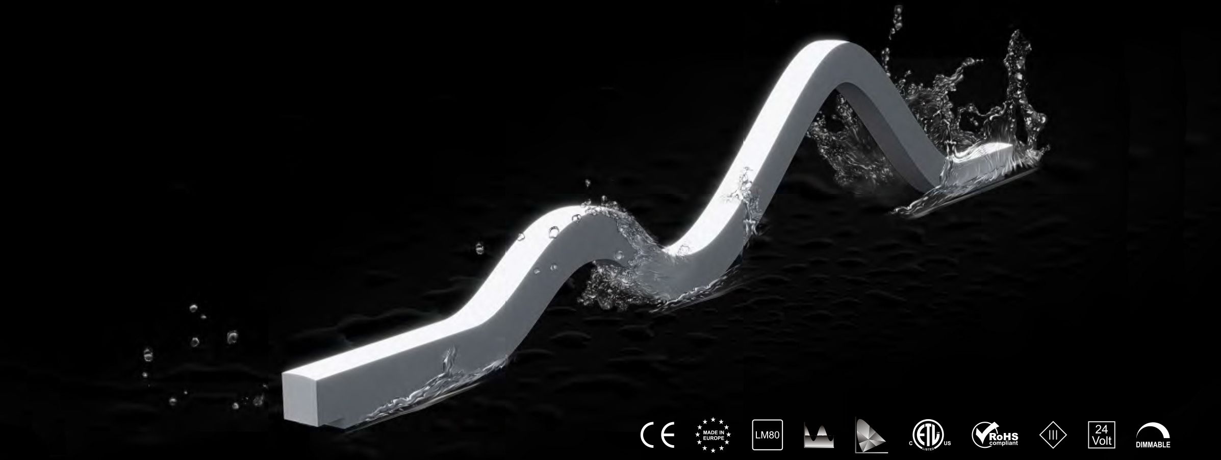 The fully encapsulated flexible housing is waterproof, UV, salt and solvent resistant, it does not attract dirt and is easy to mount and clean. Designed for professional interior or exterior lighting applications where stable, consistent and reliable performance is required.
