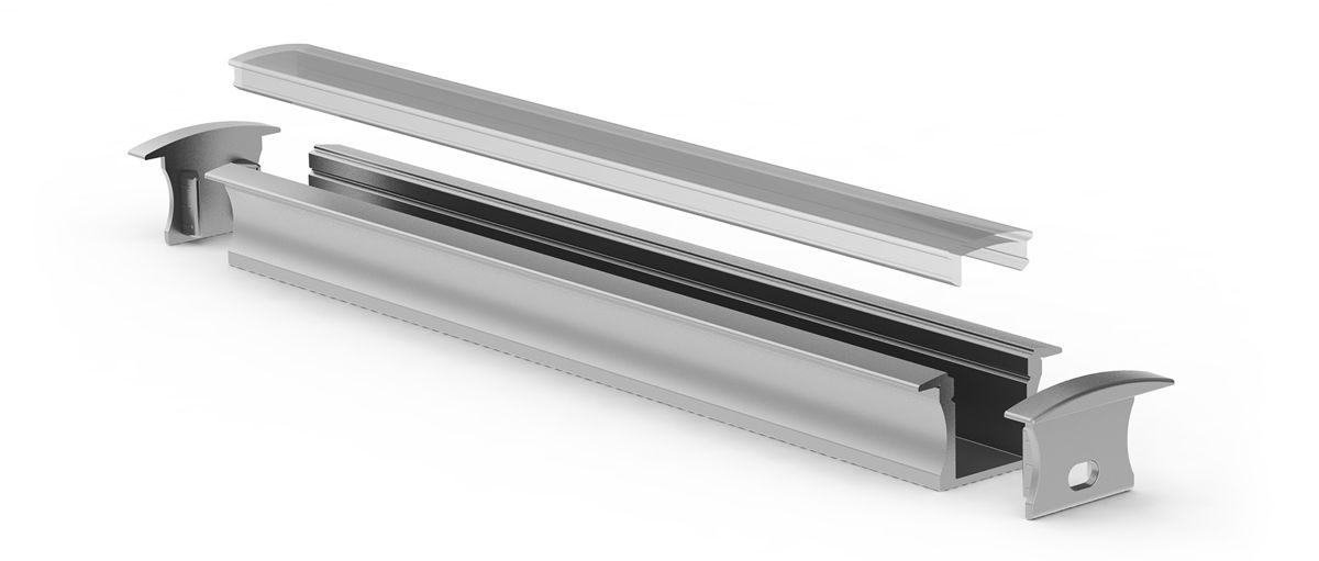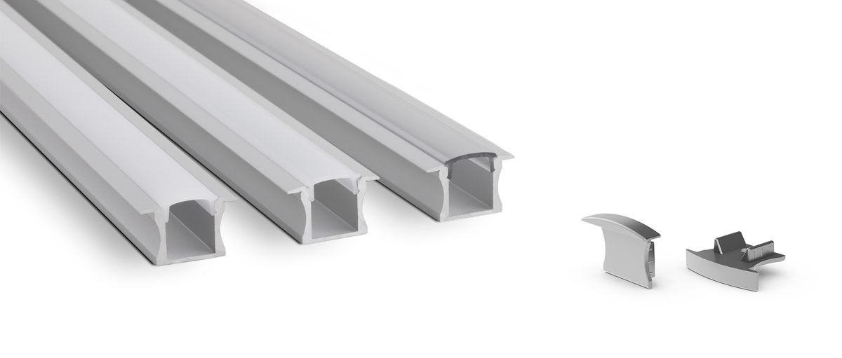 A miniature recess-mounted anodised aluminium linear LED profile, available with a transparent cover, frosted or opal polycarbonate diffusers