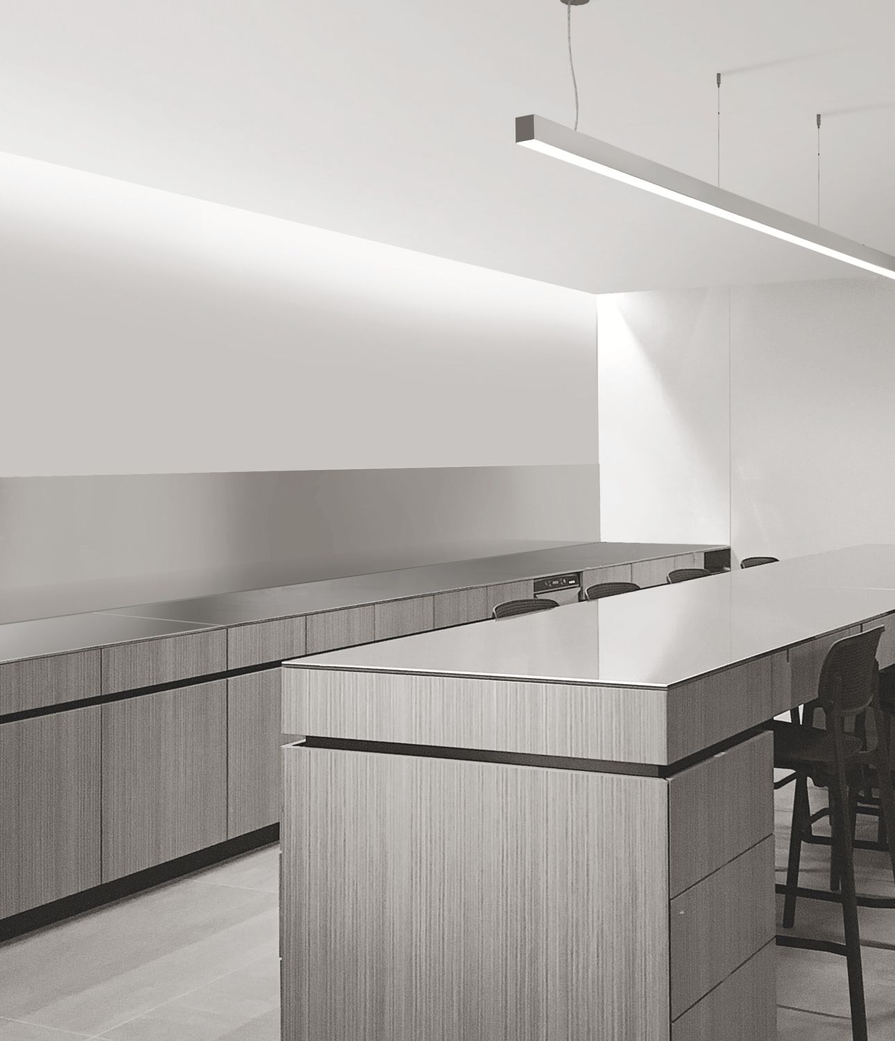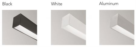 65 x 61mm aluminum profile, complete with opal diffuser (efficiency 64%) transparent prismized (efficiency 92%), integrated power supply. Suspension mounting.