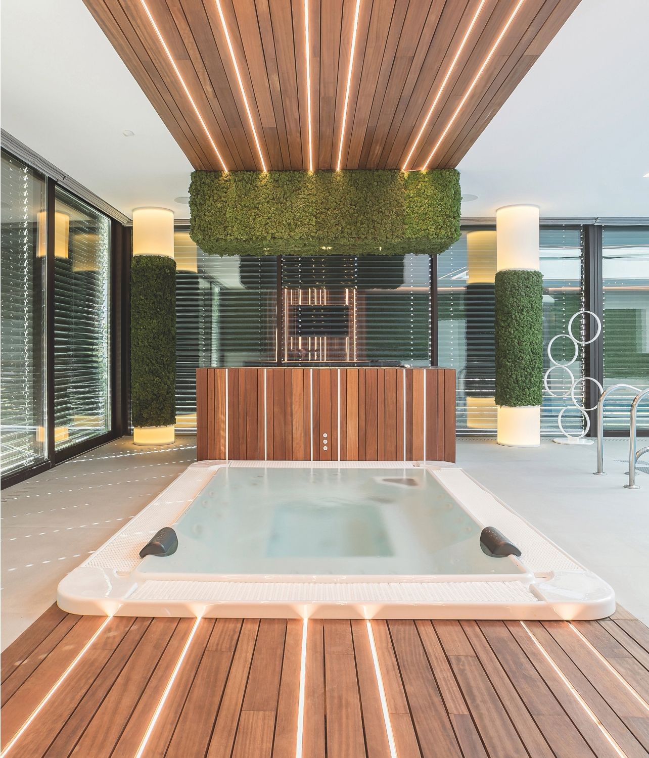 Trimless modular system. Available in white finish. The polycarbonate diffuser is flush with the lower edge (not retracted).