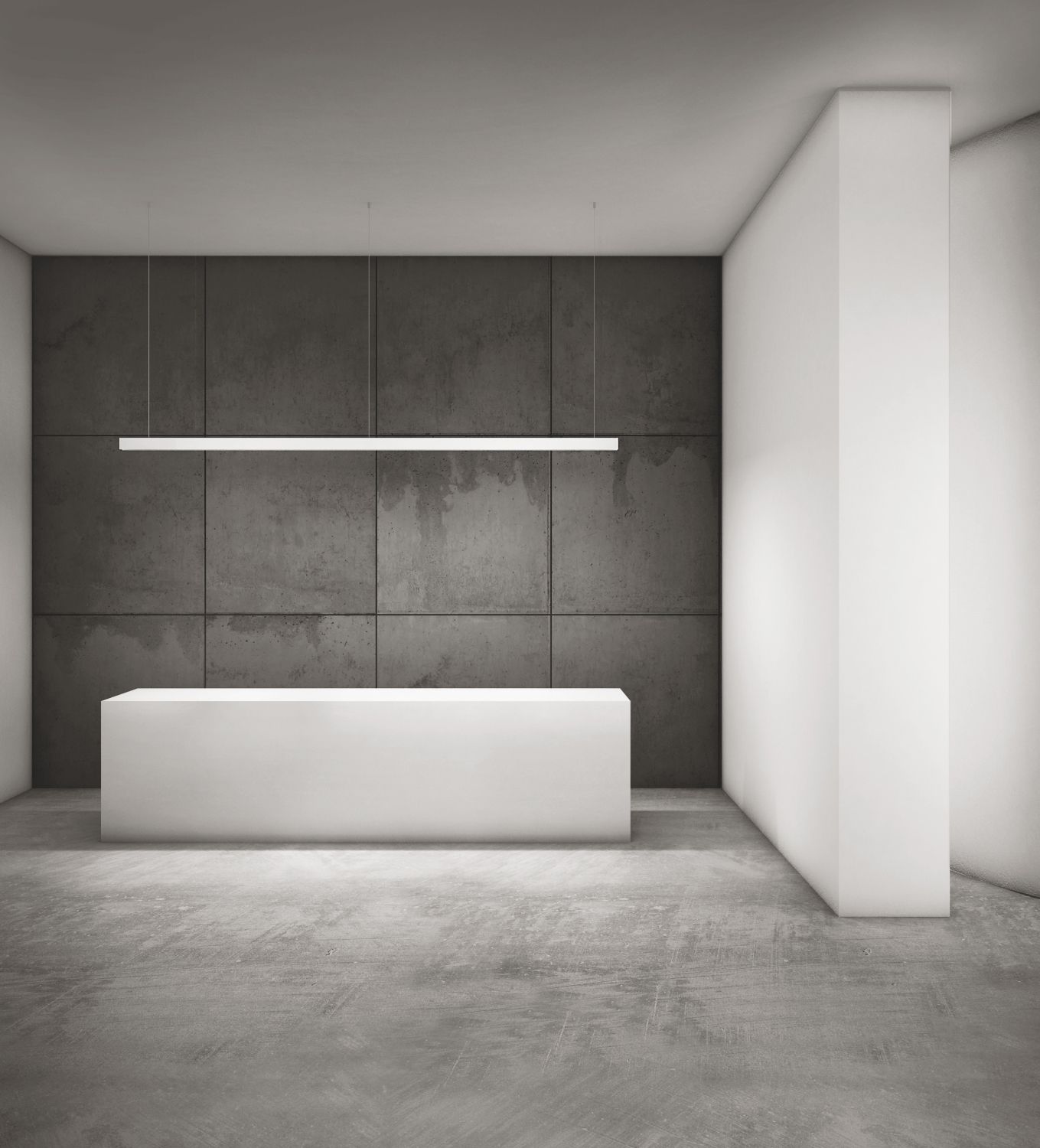 Extruded aluminium profiles 50 x 64.5 of the MX series with a polycarbonate diffuser retracted by about 21mm with respect to the edge of the profile itself to allow a more comfortable emission, lowering the direct luminance. They can be installed on the ceiling or suspended. Equipped with MKC LED module kit. Available in black, white and satin anodised aluminium finishes.