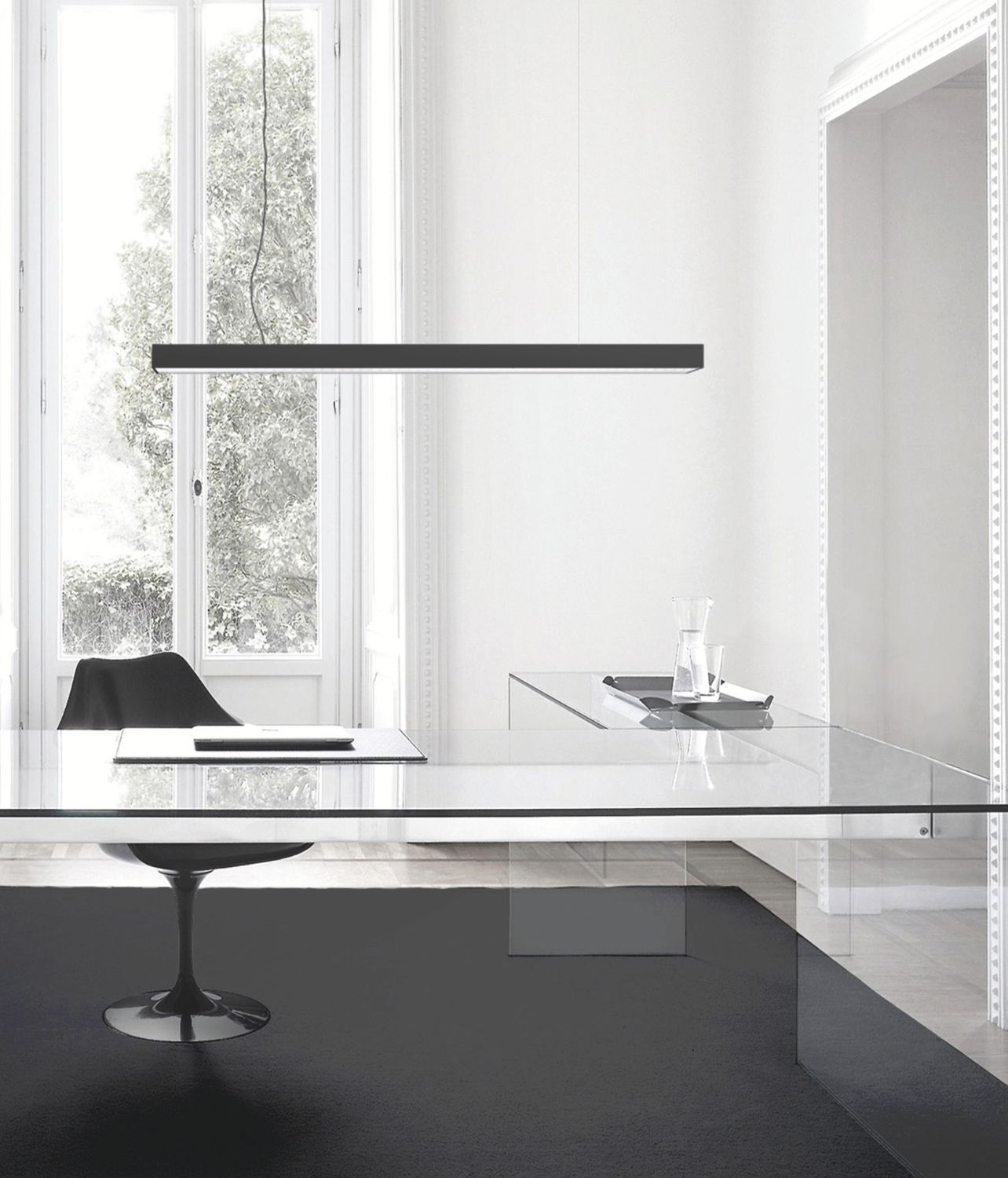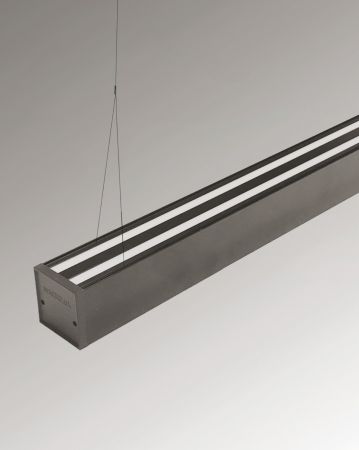 Suspended luminaire with different optics to adapt to any environment and guarantee excellent visual comfort. High efficiency 93%.