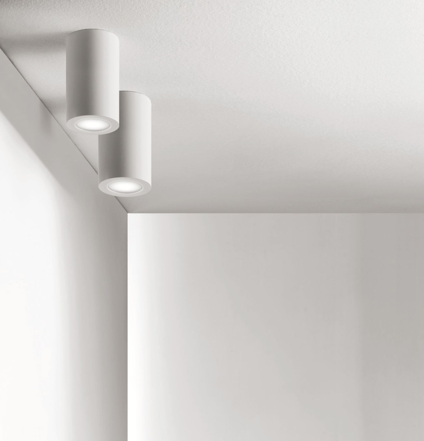 Outdoor fixture IP54 made of turned aluminum with epoxy powder coating in white or grey color, surface mounting.
