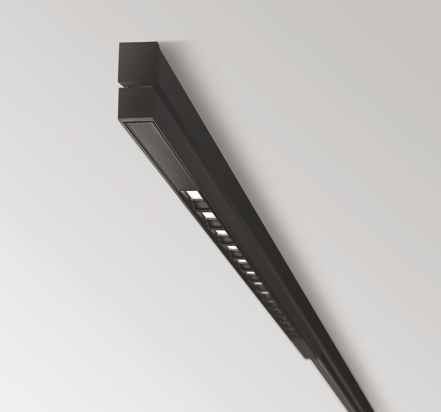 Line S is designed for installation in 48V track systems. Equipped with mechanic coupling, it makes it possible to hook and move the luminaire inside the track in a simple and safe way without the aid of any tools.