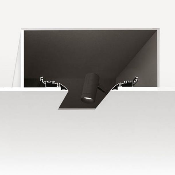 The system GROOVE consists of a pair of ML_30 profiles installed opposite each other, bounding the aperture in the plasterboard, and covered with sheet steel painted in standard matt black or white.